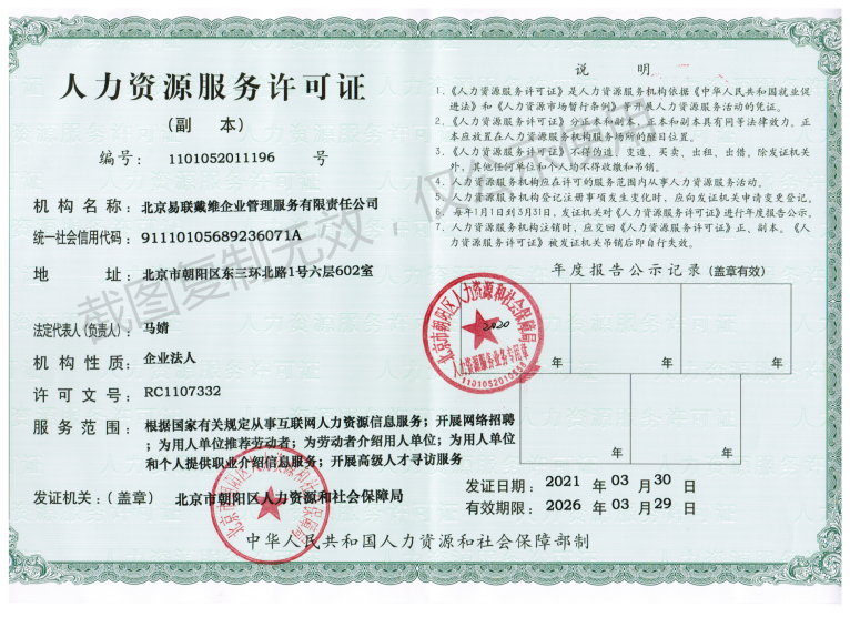 易聘简介| 网站地图| 加入易聘| 法律声明| 保密承诺| 常见问题| 资质公示| 京ICP备09081073号未经易聘网同意,不得转载本站资源,本站所有招聘信息及作品版权归易聘网所有© 2009-2022 公网安备11010502012415 | 人力资源服务许可证编号RC1107332